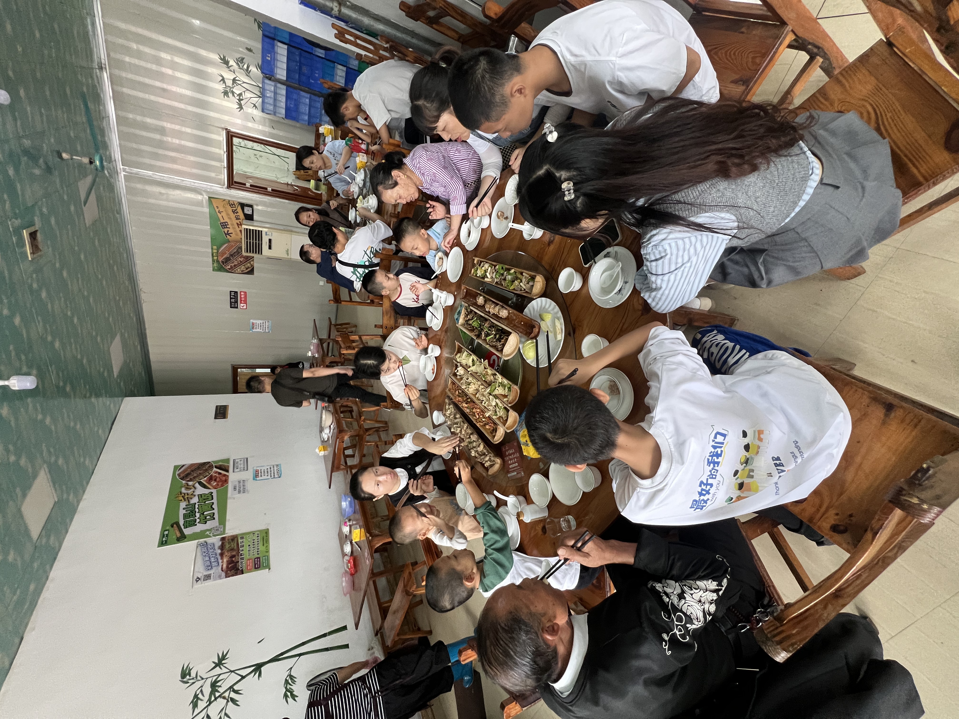 刚抵达山脚下的餐厅,烟火气已经裹满了屋子。长桌被鲜食与本地菜码得满满当当,小朋友攥着筷子盯着餐盘里的美味,长辈们边夹菜边唠着家常,同事们笑着碰杯 —— 工作里的协作默契,此刻都融成了饭桌上的热络亲昵。